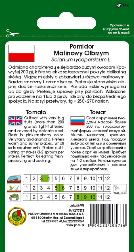 Pomidor gruntowy MALINOWY OLBRZYM 1g